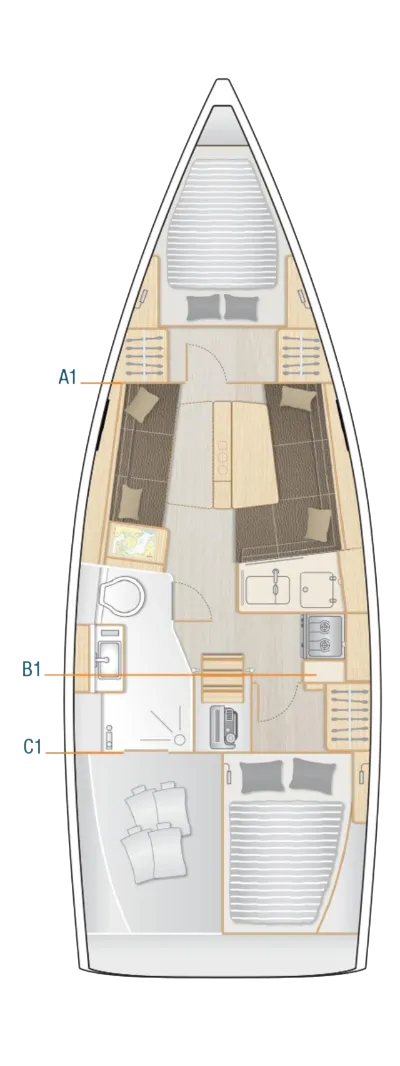 Individuell und flexibel – entscheiden Sie sich für die Kabinenaufteilung, die Ihre Hanse 348 zu Ihrem persönlichen Wohlfühlraum macht.