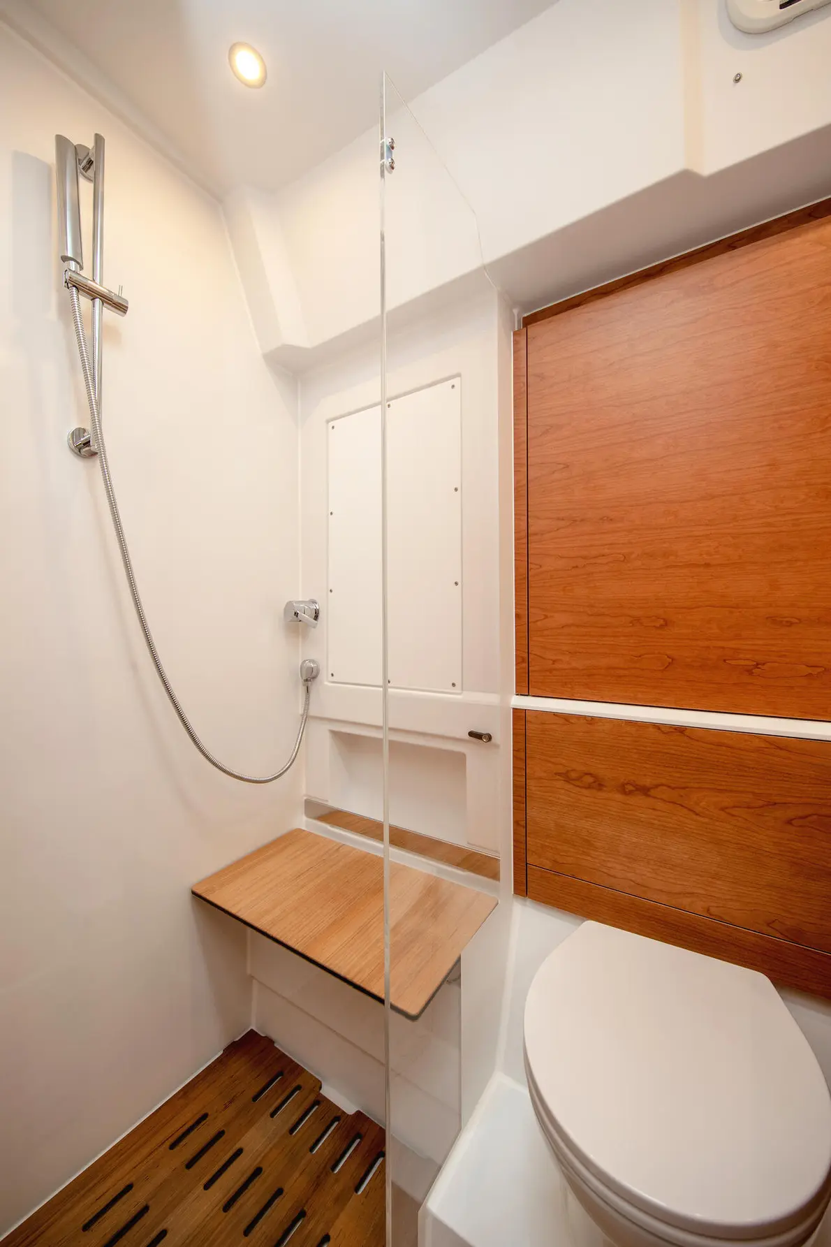Die Hanse 590 setzt mit bis zu drei luxuriösen Badezimmern neue Maßstäbe für Komfort. Jede Variante – von der großzügigen Eignerkabine mit separaten Dusch- und WC-Bereichen bis zum großen Bad mit eigener Dusche – bietet einen privaten, SPA-ähnlichen Rückzugsort und sorgt für ein entspanntes, stressfreies Segelerlebnis.